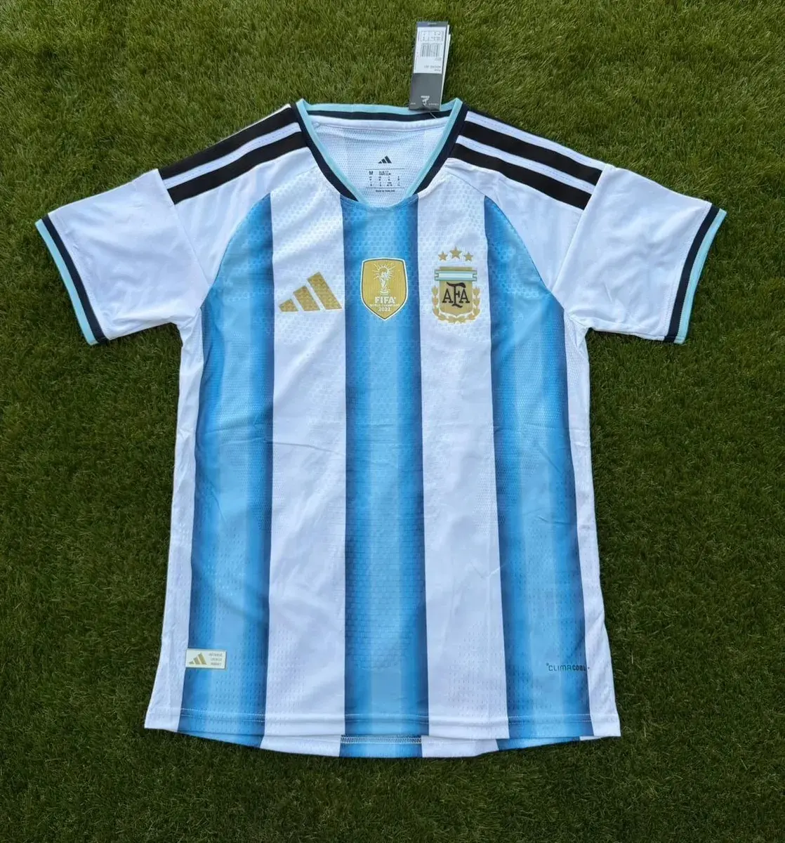 Hecha con materiales de alta calidad y con la tecnología más avanzada, esta camiseta te garantiza comodidad y durabilidad, ya sea que estés en el estadio, en casa con amigos o jugando un partido. Siente la emoción de cada gol y celebra cada victoria con la camiseta oficial del equipo de todos los argentinos.